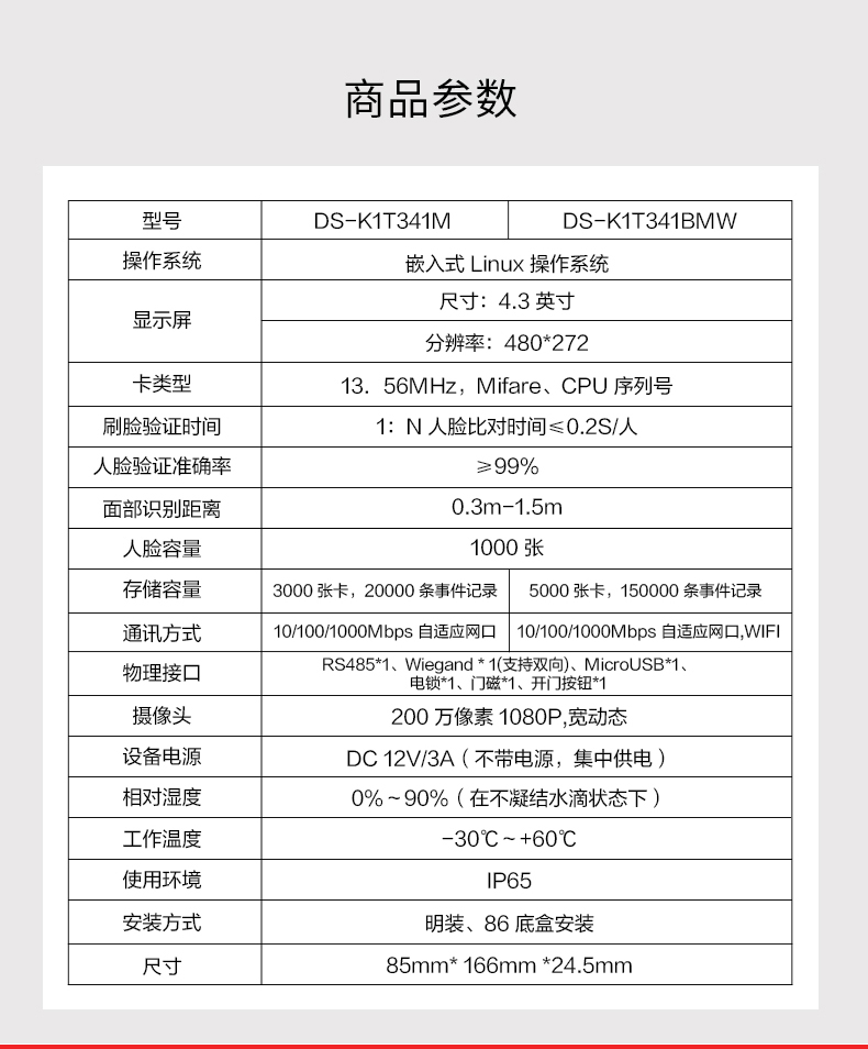 海康威视200W人脸识别DS-K1T341BM