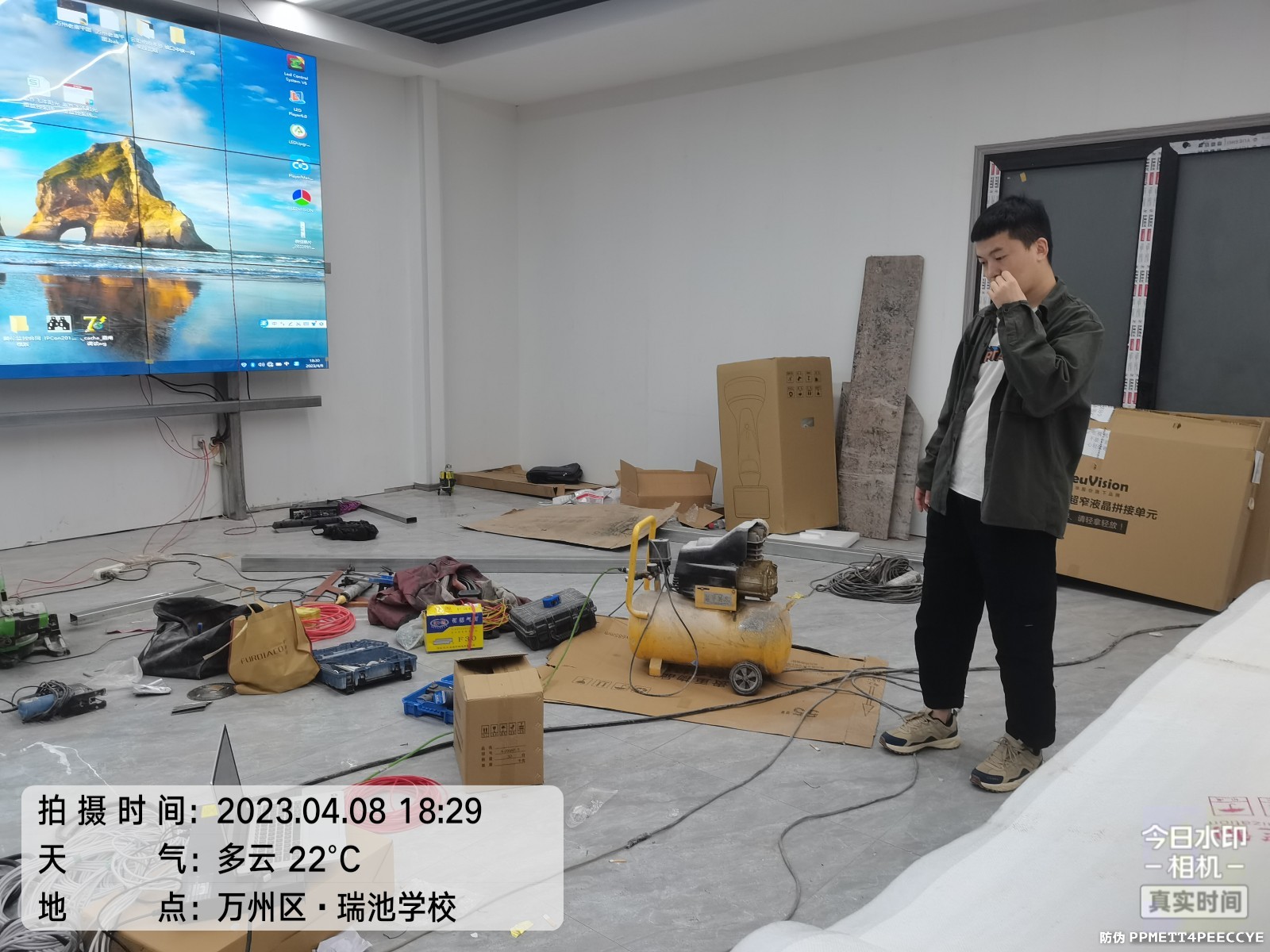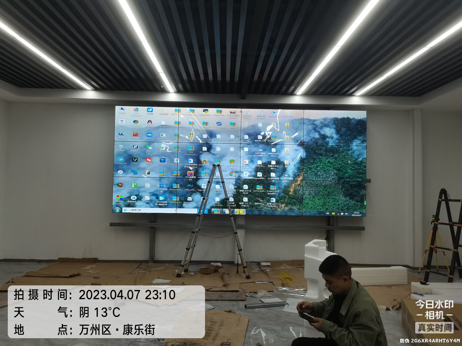 西渝中铁7局14标3号拌合站LED屏和拼接屏安装