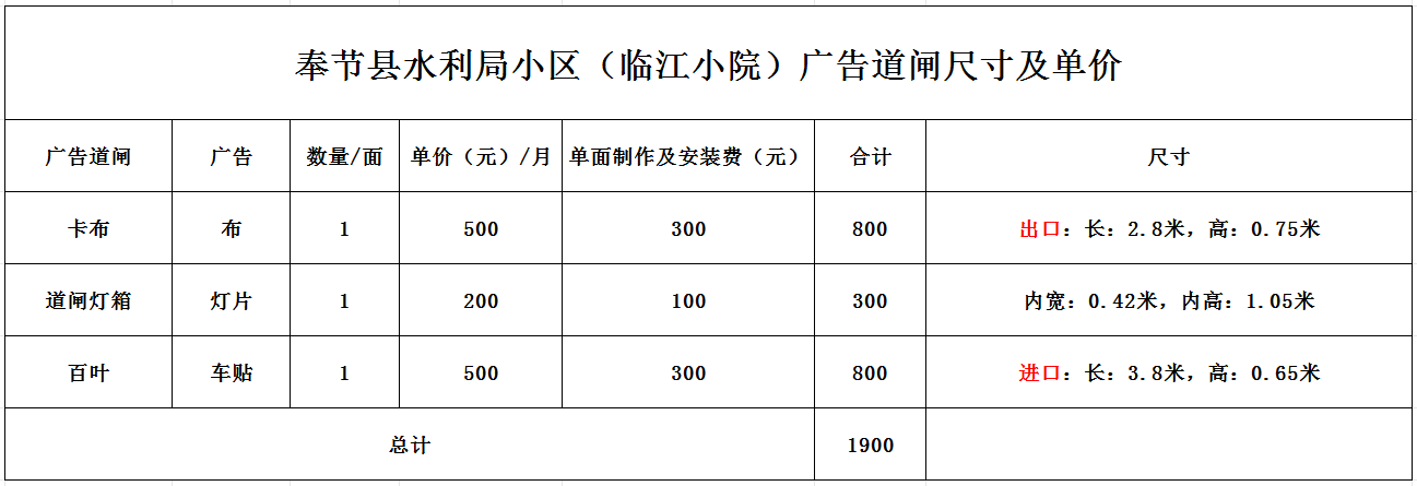奉节县水利局小区(临江小院)广告道闸招租