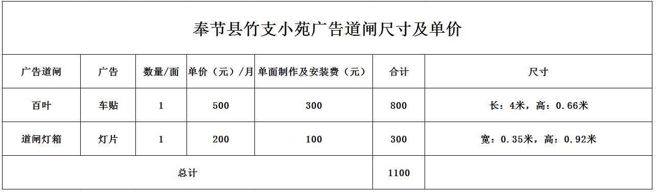 奉节县竹支小苑广告道闸招租